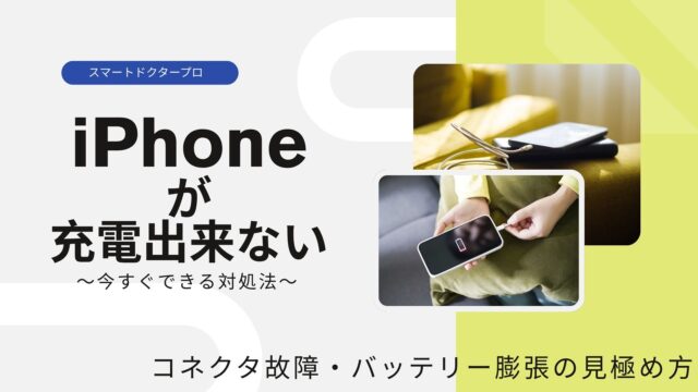 「充電ケーブルを挿しても反応しない」「充電が異常に遅い」「充電残量が突然ゼロになる」——iPhoneの充電トラブルは日常的に多く寄せられるお悩みのひとつです。原因はひとつではなく、ケーブルの問題から基板ショートまで幅広いため、正確な原因特定が解決の鍵です。スマートドクタープロが症状別に原因と対処法を丁寧に解説します。